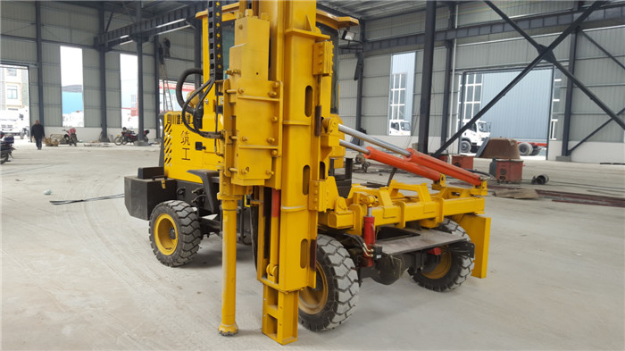 此装备为途径护栏施工专用装备,在较疏松的地层可由液压锤间接对护栏立柱停止打桩功课(114/140圆立柱),如在有大块岩石地区本装备可配合空压机(7-13m3)停止钻孔功课而后打桩。